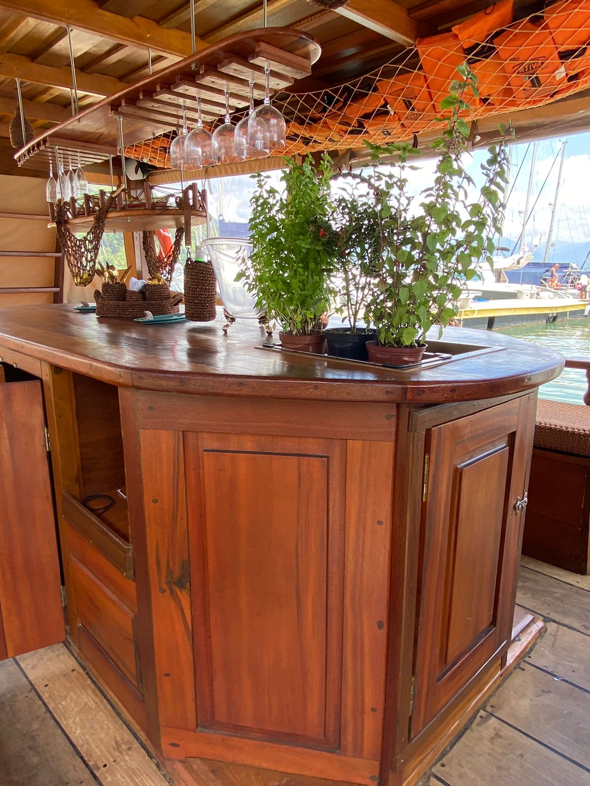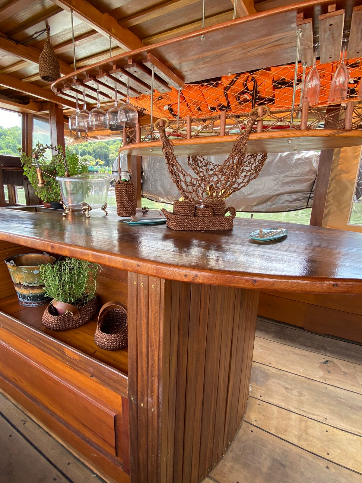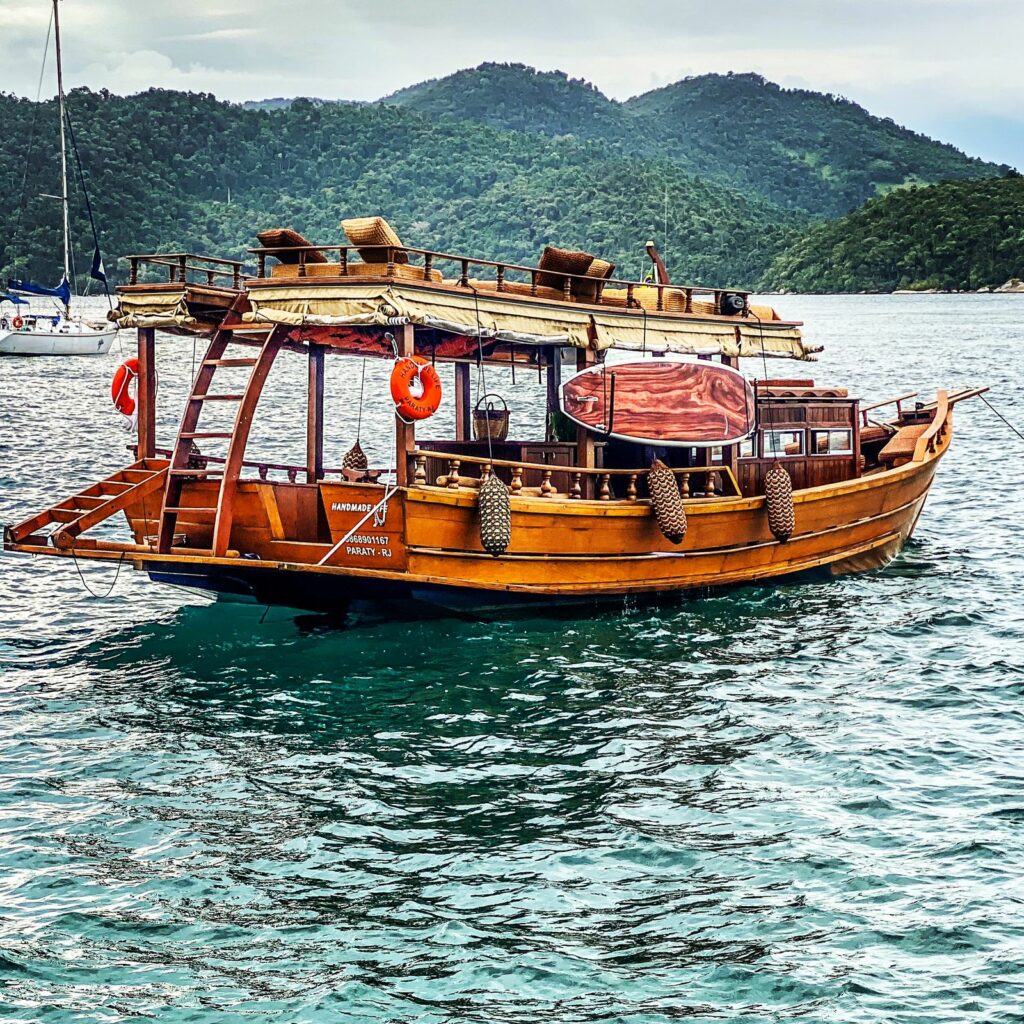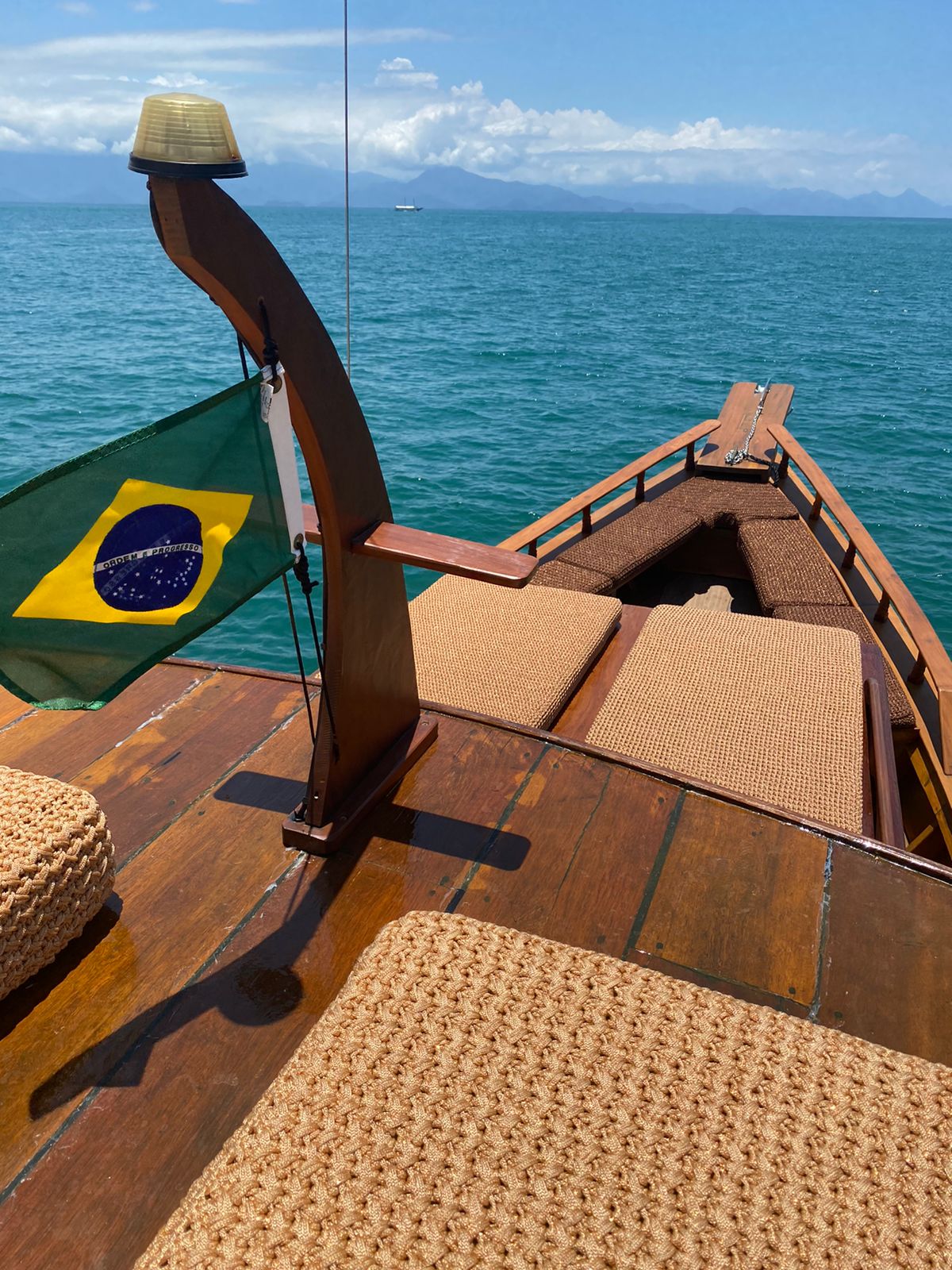 A embarcação oferece: Banheiro, Ducha com água doce, Stand Up, Toalhas, Caixa com gelo e frutas, coletes salva-vidas.